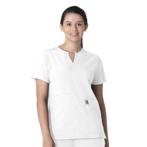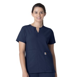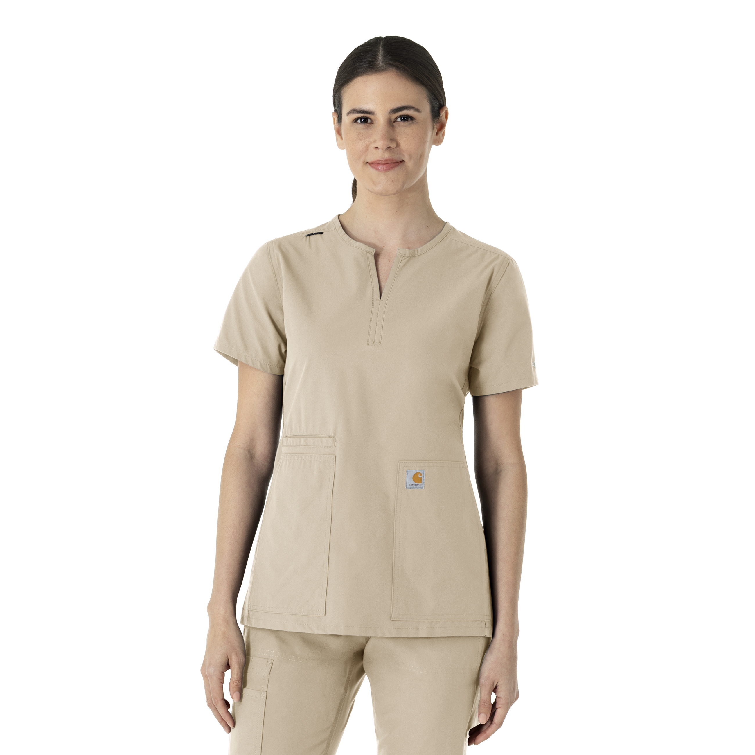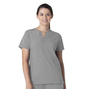 Blend style with function when wearing the Carhartt Force Essentials Women's Notch Neck Tunic Top. The notch neckline sits above the collar bone while the princess seaming gives this women’s scrub top a more tailored fit. The curved shirttail hemline not only adds style but length and along with the side hem vents sitting, bending, and reaching feels less restricted. Need pockets for your essentials? This stylish scrub top has large front patch side entry pockets with a besom seam hidden cell phone pocket. We know how tough shifts can get so we added FastDry technology along with Rugged Flex Stretch to provide moisture-wicking and an all-day comfortable fit. We know stains are inevitable but with Stain Breaker technology those stains are easily released giving you like new scrubs with every wear. 50% Recycled Polyester/50% Polyester Womens Pullover Modern Notch Neck Notch neckline that sits above the collar bone with badge ID loop along shoulder seam Large front patch side-entry pockets with hidden top loading cell phone pocket FastDry® technology keeps you cool for all day comfort, built to move with Rugged Flex® stretch technology, Stain Breaker® technology releases stains Princess seaming for a tailored fit, curved shirttail hemline for added style and side hem vents for ease of movement Lightweight, durable, sustainable and comfortable Ripstop fabric Carhartt Womens Scrub Top Notch Neck Carhartt Core C12213 Machine wash cold with like colors on gentle. Tumble dry on low. Promptly remove from dryer. Cool iron if needed. Avoid using bleach or harsh chemicals.