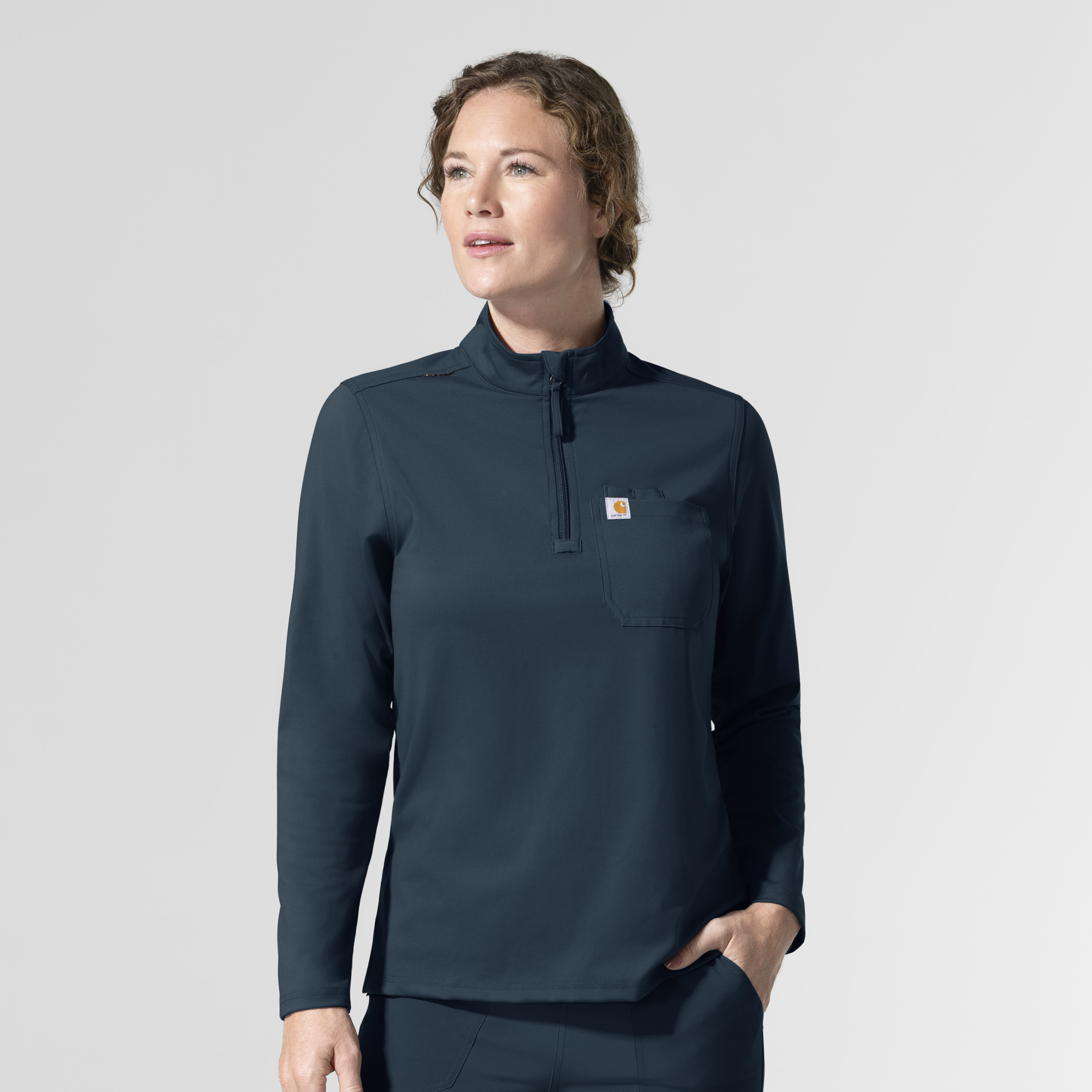 94% Polyester/6% Spandex Womens Pullover Modern Half Zip Side slits at hem for ease of movement Three pockets for utility: one chest pocket and two dedicated pen pockets Functional badge loop placed at the shoulder Chin guard detail for added comfort Designed to mix and match seamlessly with CCX Knits and CCX pieces Machine wash cold with like colors on gentle. Tumble dry on low. Promptly remove from dryer. Cool iron if needed. Avoid using bleach or harsh chemicals.