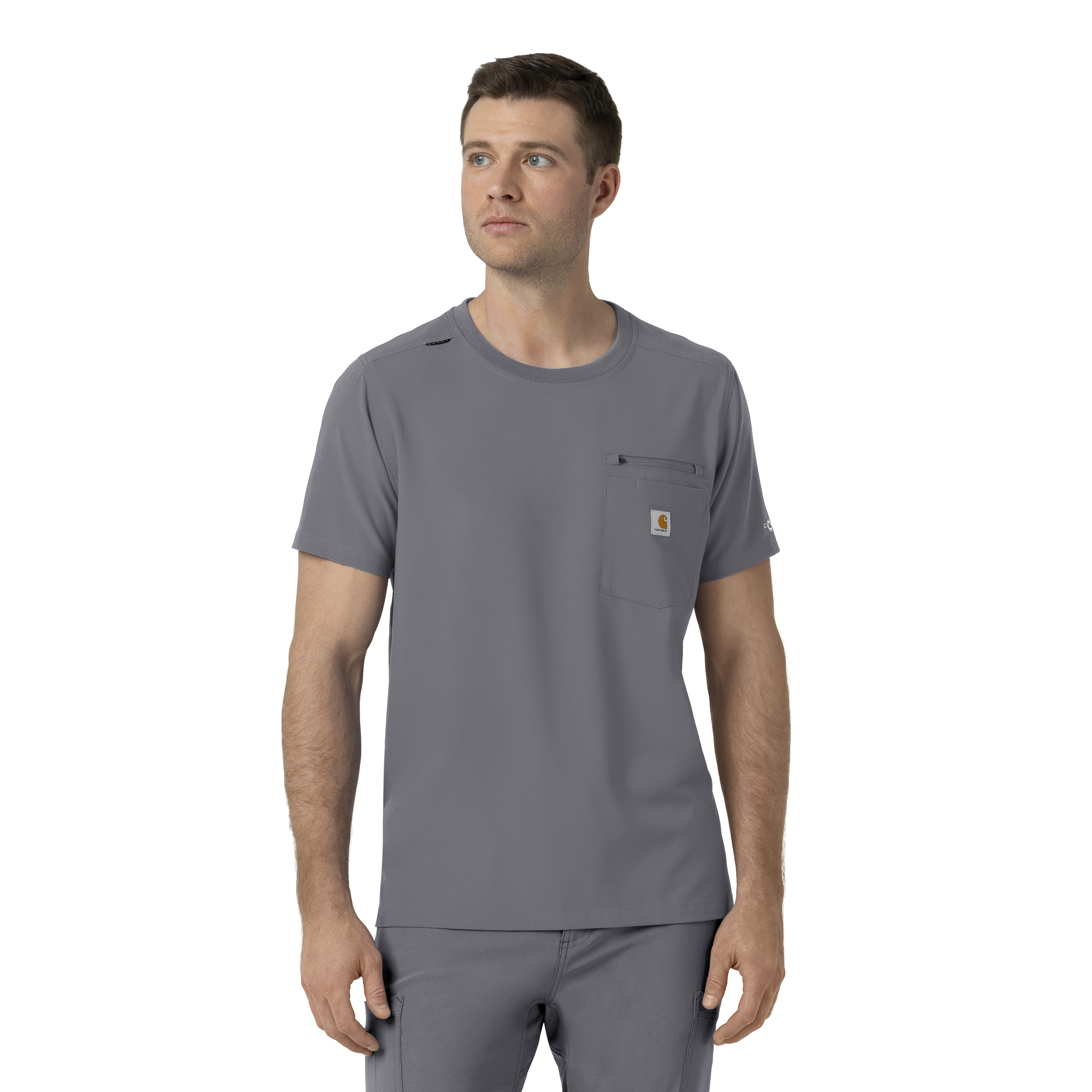This men's Carhartt scrub top offers the best of both worlds: the relaxed feel of a t-shirt with the robust functionality of a professional scrub top. Engineered to withstand the demands of extended shifts and rigorous work environments, it's a reliable choice for healthcare professionals. Crafted from durable stretch polyester, it provides exceptional flexibility and long-lasting wear, ensuring you can move freely and comfortably throughout your day. Designed with practicality in mind, this scrub top features multiple pockets, offering ample storage for essential tools and personal items. A secure zip pocket ensures valuables remain safe and easily accessible. The integrated shoulder badge loop allows for clear and visible display of your ID, streamlining identification procedures and enhancing workplace efficiency. This Carhartt scrub top is built to endure, offering a blend of comfort, durability, and functional design. It's an essential piece for any professional who requires reliable workwear that can keep up with their demanding schedule. 94% Polyester/6% Spandex Mens Pullover Modern Crew Neck Knit fabric crew neck with shoulder badge loop One secure zip pocket, one top loading chest pocket with pen slot Side hem vents for ease of movement at hips Forward shoulder seams Durable and comfortable polyester spandex blend of fabric Machine wash cold with like colors on gentle. Tumble dry on low. Promptly remove from dryer. Cool iron if needed. Avoid using bleach or harsh chemicals.