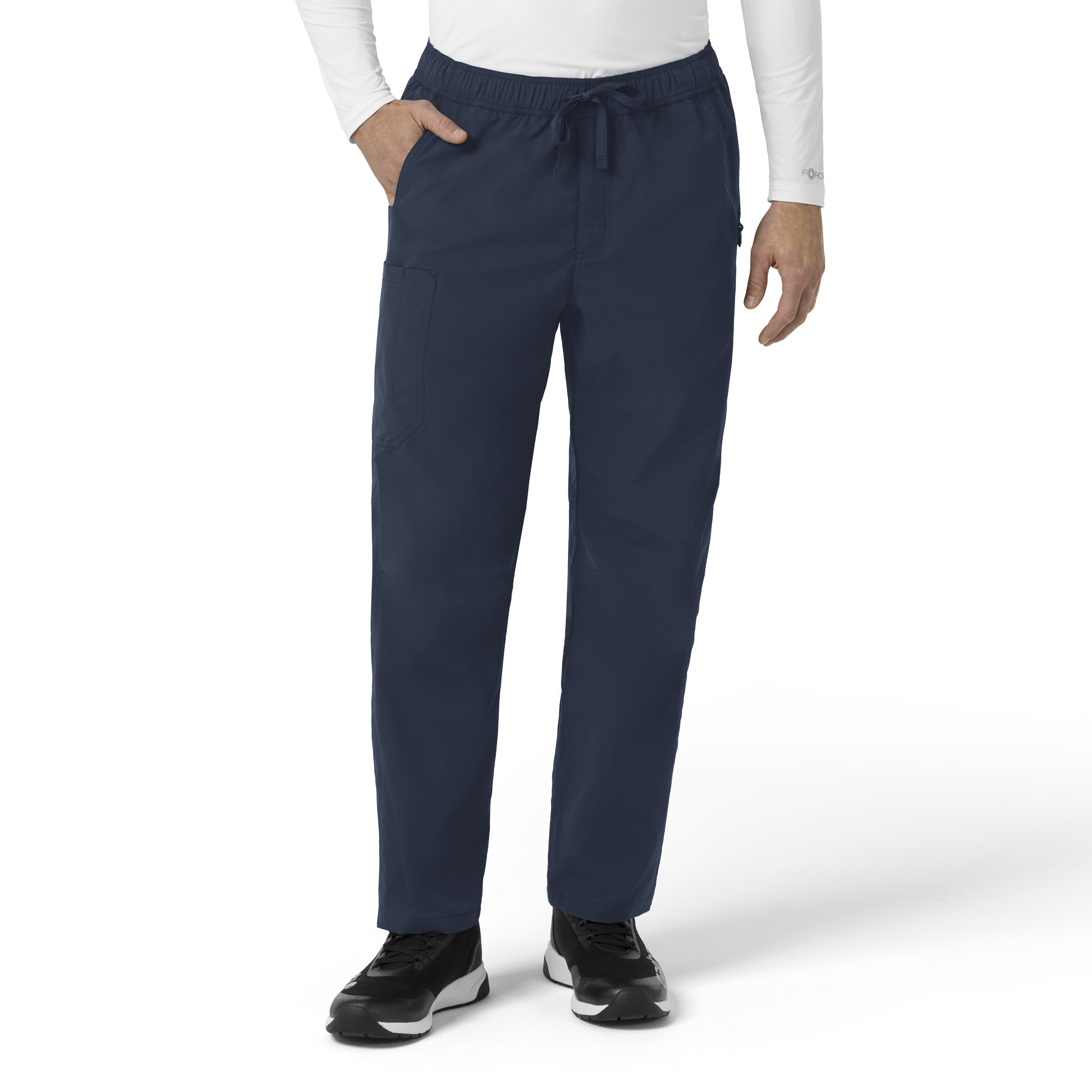 Working in the field can mean limited supplies and an even greater need to think on your feet. These men's Carhartt scrub bottoms stand up to the challenge, giving you the perfect combination of flex, strength, and storage to help you feel ready for anything. They're built from durable ripstop fabric that's incredibly strong yet lightweight, so you get the toughness you need without being weighed down. This high-performance material includes Rugged Flex® stretch technology that lets you bend, twist, and crouch with ease, ensuring nothing restricts your movement when the pressure is on. It's also moisture-wicking to keep you dry and comfortable, and expertly repels fur, so you look polished and put-together no matter where the job takes you. With six total pockets, these bottoms provide the ample storage nurses can never have too much of. They feature two hand pockets, two back pockets, a spacious cargo pocket, and a dedicated pen pocket—all designed to keep your tools and essentials organized and within easy reach. The modern fit drapes clean and straight from waist to hem, offering a comfortable and professional silhouette that's both functional and stylish. The elastic waist with a drawstring ensures a secure fit, while the knee articulation allows for extra mobility. As a core piece from the FLD collection, these scrubs honor those who work in non-traditional healthcare settings, from disaster relief to rural vet care, with a durable, multi-functional design that's ready for anything. 100% Polyester Ripstop Mens Elastic Mid Rise Modern Straight Leg Full elastic waistband with drawcord Two front hand pockets, one cargo pocket, one pen pocket, two back pockets Knee articulation at front and back of leg to allow for more movement Side vents at hem Ripstop fabric with moisture wicking, stretch and fur repellency Machine wash cold with like colors on gentle. Tumble dry on low. Promptly remove from dryer. Cool iron if needed. Avoid using bleach or harsh chemicals.