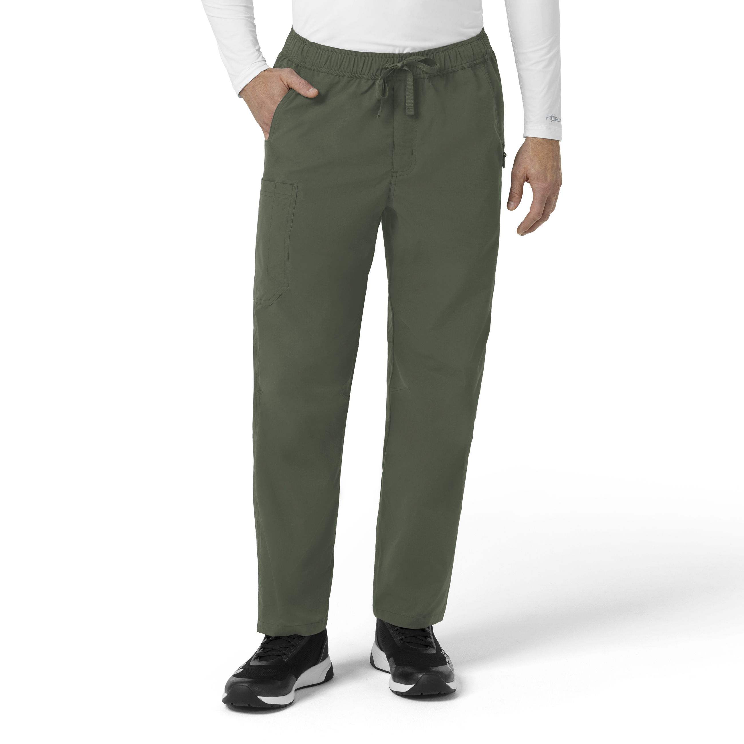 Working in the field can mean limited supplies and an even greater need to think on your feet. These men's Carhartt scrub bottoms stand up to the challenge, giving you the perfect combination of flex, strength, and storage to help you feel ready for anything. They're built from durable ripstop fabric that's incredibly strong yet lightweight, so you get the toughness you need without being weighed down. This high-performance material includes Rugged Flex® stretch technology that lets you bend, twist, and crouch with ease, ensuring nothing restricts your movement when the pressure is on. It's also moisture-wicking to keep you dry and comfortable, and expertly repels fur, so you look polished and put-together no matter where the job takes you. With six total pockets, these bottoms provide the ample storage nurses can never have too much of. They feature two hand pockets, two back pockets, a spacious cargo pocket, and a dedicated pen pocket—all designed to keep your tools and essentials organized and within easy reach. The modern fit drapes clean and straight from waist to hem, offering a comfortable and professional silhouette that's both functional and stylish. The elastic waist with a drawstring ensures a secure fit, while the knee articulation allows for extra mobility. As a core piece from the FLD collection, these scrubs honor those who work in non-traditional healthcare settings, from disaster relief to rural vet care, with a durable, multi-functional design that's ready for anything. 100% Polyester Ripstop Mens Elastic Mid Rise Modern Straight Leg Full elastic waistband with drawcord Two front hand pockets, one cargo pocket, one pen pocket, two back pockets Knee articulation at front and back of leg to allow for more movement Side vents at hem Ripstop fabric with moisture wicking, stretch and fur repellency Machine wash cold with like colors on gentle. Tumble dry on low. Promptly remove from dryer. Cool iron if needed. Avoid using bleach or harsh chemicals.