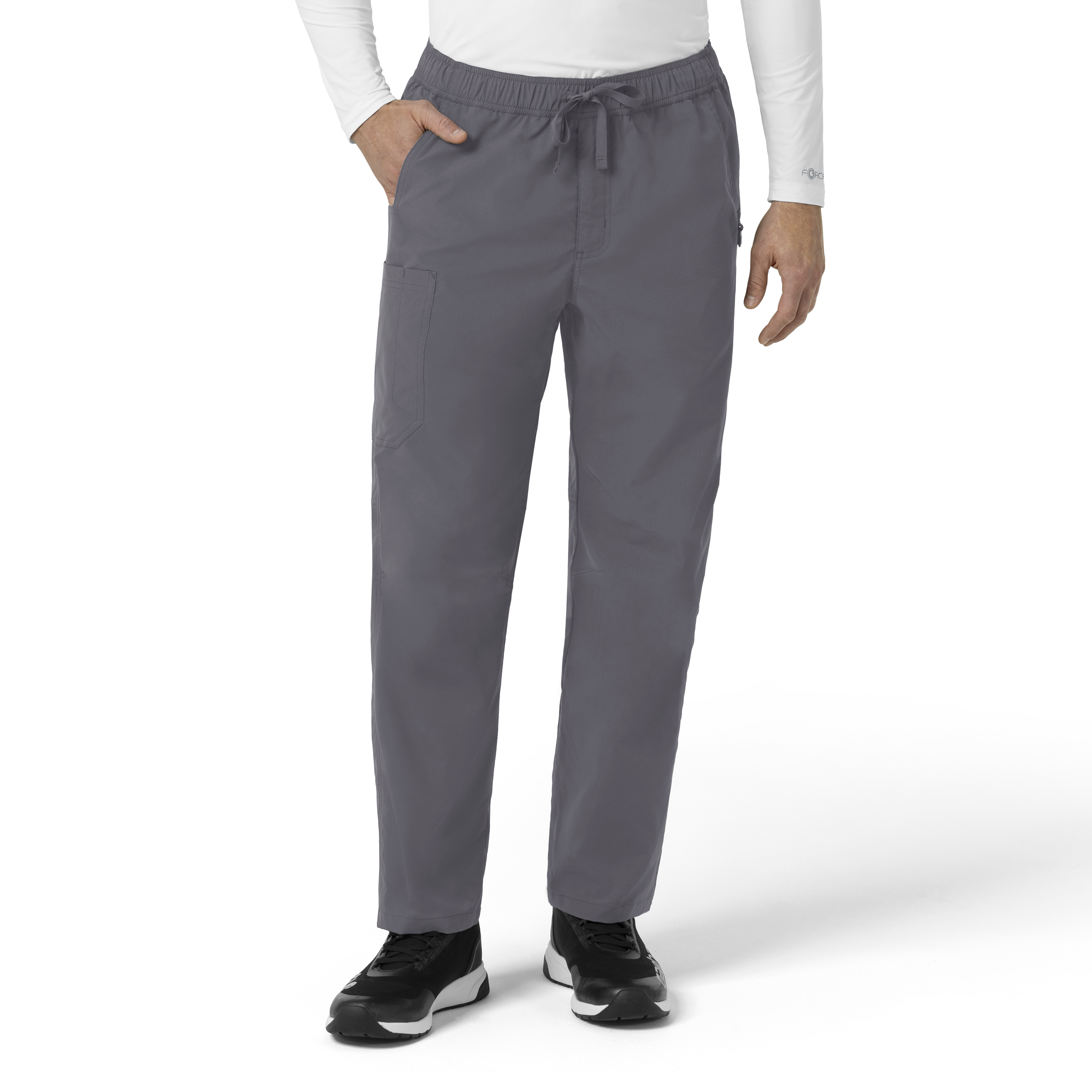 Working in the field can mean limited supplies and an even greater need to think on your feet. These men's Carhartt scrub bottoms stand up to the challenge, giving you the perfect combination of flex, strength, and storage to help you feel ready for anything. They're built from durable ripstop fabric that's incredibly strong yet lightweight, so you get the toughness you need without being weighed down. This high-performance material includes Rugged Flex® stretch technology that lets you bend, twist, and crouch with ease, ensuring nothing restricts your movement when the pressure is on. It's also moisture-wicking to keep you dry and comfortable, and expertly repels fur, so you look polished and put-together no matter where the job takes you. With six total pockets, these bottoms provide the ample storage nurses can never have too much of. They feature two hand pockets, two back pockets, a spacious cargo pocket, and a dedicated pen pocket—all designed to keep your tools and essentials organized and within easy reach. The modern fit drapes clean and straight from waist to hem, offering a comfortable and professional silhouette that's both functional and stylish. The elastic waist with a drawstring ensures a secure fit, while the knee articulation allows for extra mobility. As a core piece from the FLD collection, these scrubs honor those who work in non-traditional healthcare settings, from disaster relief to rural vet care, with a durable, multi-functional design that's ready for anything. 100% Polyester Ripstop Mens Elastic Mid Rise Modern Straight Leg Full elastic waistband with drawcord Two front hand pockets, one cargo pocket, one pen pocket, two back pockets Knee articulation at front and back of leg to allow for more movement Side vents at hem Ripstop fabric with moisture wicking, stretch and fur repellency Machine wash cold with like colors on gentle. Tumble dry on low. Promptly remove from dryer. Cool iron if needed. Avoid using bleach or harsh chemicals.
