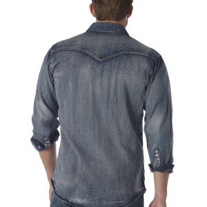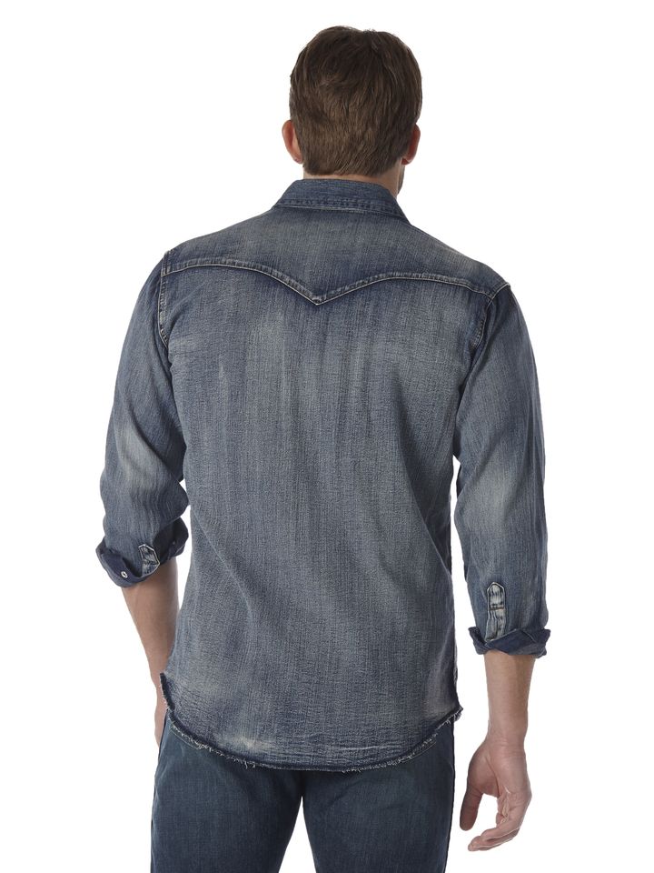 • Fit: Classic • Sleeve Length: Long • Front Closure: Snaps • Front Pockets: Two spade with snaps • Back: Authentic Western Back Yoke • Collar: Spread • Cuff: Three Snap Closure • Material: 100% Cotton; 6.7 oz. Denim • Material Weight: 6.7 oz. Denim