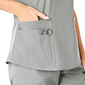 - Feature 1: 3/4" V-Neckline for more feminine look with corded matching badge ID loop at shoulder seam