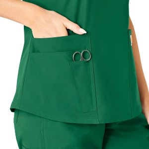 - Feature 1: 3/4" V-Neckline for more feminine look with corded matching badge ID loop at shoulder seam