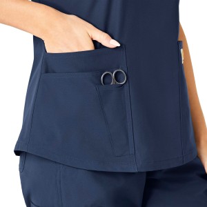 - Feature 1: 3/4" V-Neckline for more feminine look with corded matching badge ID loop at shoulder seam