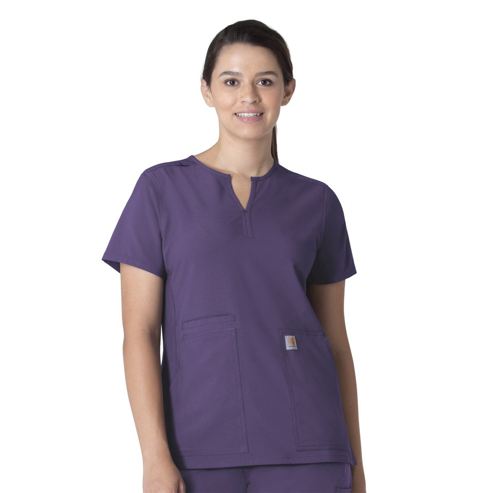 Blend style with function when wearing the Carhartt Force Essentials Women's Notch Neck Tunic Top. The notch neckline sits above the collar bone while the princess seaming gives this women’s scrub top a more tailored fit. The curved shirttail hemline not only adds style but length and along with the side hem vents sitting, bending, and reaching feels less restricted. Need pockets for your essentials? This stylish scrub top has large front patch side entry pockets with a besom seam hidden cell phone pocket. We know how tough shifts can get so we added FastDry technology along with Rugged Flex Stretch to provide moisture-wicking and an all-day comfortable fit. We know stains are inevitable but with Stain Breaker technology those stains are easily released giving you like new scrubs with every wear. 50% Recycled Polyester/50% Polyester Womens Pullover Modern Notch Neck Notch neckline that sits above the collar bone with badge ID loop along shoulder seam Large front patch side-entry pockets with hidden top loading cell phone pocket FastDry® technology keeps you cool for all day comfort, built to move with Rugged Flex® stretch technology, Stain Breaker® technology releases stains Princess seaming for a tailored fit, curved shirttail hemline for added style and side hem vents for ease of movement Lightweight, durable, sustainable and comfortable Ripstop fabric Carhartt Womens Scrub Top Notch Neck Carhartt Core C12213 Machine wash cold with like colors on gentle. Tumble dry on low. Promptly remove from dryer. Cool iron if needed. Avoid using bleach or harsh chemicals.