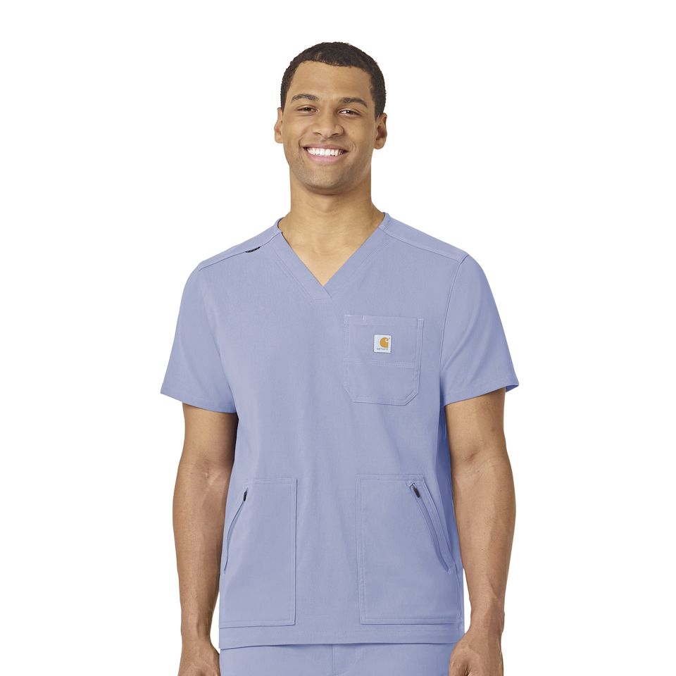 Rugged Flex Peak Men's 5-Pocket V-Neck Scrub Top - Ceil Blue