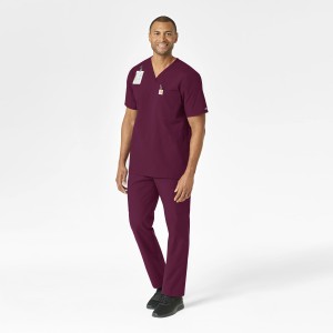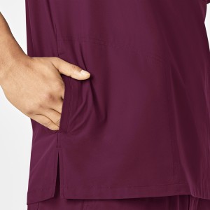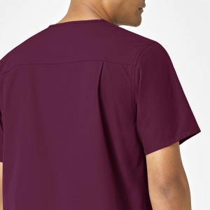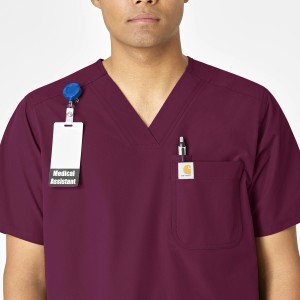 Force Essentials Men's V-Neck Shirttail Scrub Top - Wine