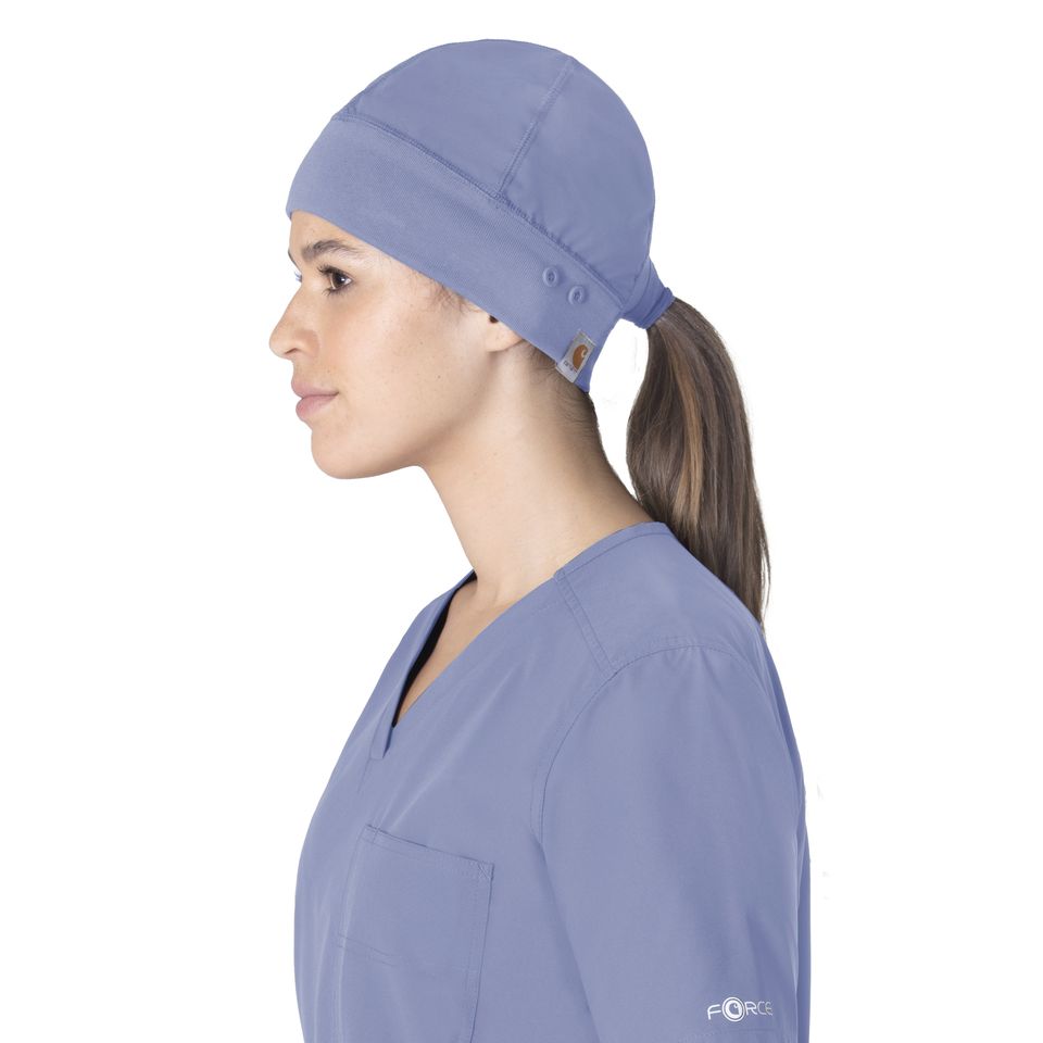 Carhartt Unisex Force Essentials Beanie Scrub Cap has a stretchy rib-knit banded opening giving you a comfortable fit with every wear. These medical scrubs caps are designed with six panel construction with flatlock seaming and a back opening giving you the option to pull back your hair. Side buttons were added and strategically placed in two locations for mask connection to help offer relief on your ears. When you think scrub caps you think sweat but no worries, this Carhartt Force fabric is lightweight and built with FastDry technology that wicks away moisture keeping your head cool and dry. 50% Recycled Polyester/50% Polyester Unisex Pull On Unisex Scrub Caps Six panel construction with flatlock seaming with back opening to utilize for pulling hair back Side button placement in two location options for mask connection to offer relief for your ears FastDry® technology keeps you cool for all day comfort, built to move with Rugged Flex® stretch technology, Stain Breaker® technology releases stains Rib knit banded opening Lightweight, durable, sustainable and comfortable Ripstop fabric Carhartt Unisex Scrub Cap Scrub Caps Carhartt Core C40013 Machine wash cold with like colors on gentle. Tumble dry on low. Promptly remove from dryer. Cool iron if needed. Avoid using bleach or harsh chemicals.