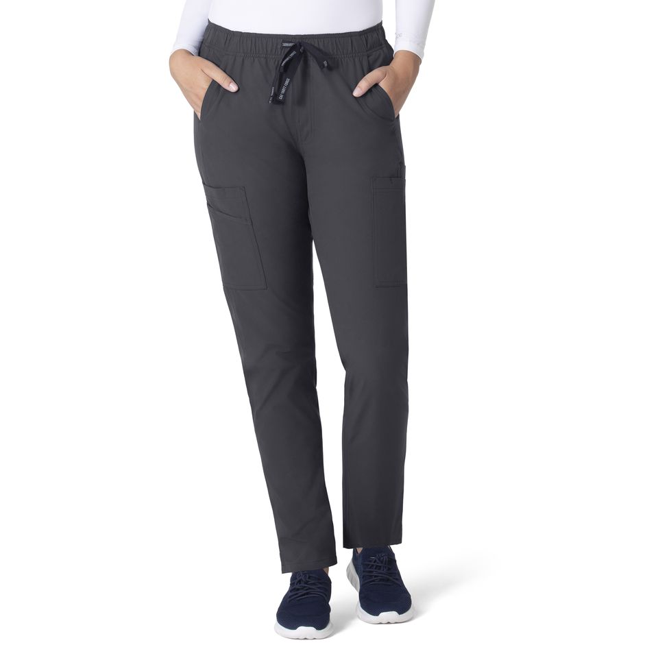 Offering a full elastic and drawstring waistband, the Carhartt Women’s Force Essentials Straight Leg Scrub Pant are made for ultimate comfort. Designed with fabric technology to keep you cool all day while providing you with much needed stretch. As you would expect from Carhartt; these women’s scrub pants are lightweight, breathable, and durable. Carhartt Scrubs is all about functionality and these medical scrub pants are designed to hold all of your essentials close. With a total of 9 convenient and functional pockets you’ll have ample room for everything you need to keep handy, including a hidden cell phone pocket you are set and ready to go for every shift. If fit is a top priority, you will love the tailored fit of these scrub pants thanks to shaping darts at the back waist and bottom hem vents. The larger (6 ¾ inch) leg opening offers a comfortable fit so you have more room to move, but keeps things fashionable with the straight leg style cut. If you love a stylish pant with the classic hem styling these scrub pants were built to be part of your uniform rotation so grab a couple pairs because they’ll quickly become your go-to scrub pants! 50% Recycled Polyester/50% Polyester Womens Drawstring Mid Rise Modern Straight Leg Full elastic and Carhartt Force branded drawstring combination waistband Functional and stylish pockets with two front slash pockets, triple cargo pocket at wearer's right with a stacked cell phone pocket then an additional cargo pocket on the wearer's left side and two back pockets FastDry® technology keeps you cool for all day comfort, built to move with Rugged Flex® stretch technology, Stain Breaker® technology releases stains Darts at the back waist for added style and comfort, side hem vents at the bottom of a classic straight leg pant with a 6 3/4 inch leg opening so you have some room to move Lightweight, durable, sustainable and comfortable Ripstop fabric Carhartt Womens Scrub Pant Straight Leg Carhartt Core C51213 Machine wash cold with like colors on gentle. Tumble dry on low. Promptly remove from dryer. Cool iron if needed. Avoid using bleach or harsh chemicals.