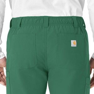 Carhartt Men’s Force Essentials Straight Leg Pant is built with all the features men ask for in medical scrubs. These scrub pants are packed with convenient features like a functioning zipper fly, snap closure, and a full elastic waistband with 7 belt loops total! With the addition of the fully constructed waistband with a drawstring, these scrubs allow you to achieve the perfect fit with every wear. The durable stretch ripstop fabric is reinforced with double-needle stitching at the inseam and added comfort thanks to the wider 7 3/4 leg opening. The fabric is enhanced with FastDry, Rugged Flex Stretch and Stain Breaker Technology so during your hectic shifts the fabric stays dry, moves with you and those inevitable stains are released with ease. Functionality is always a factor when designing Carhartt scrubs and these men’s scrub pants were built with 10 pockets! Two easy to access front and back pockets, a triple cargo pocket and angled top accessory pocket with a pen holder. An additional cargo pocket rounds out all your compartment needs for storing your much needed essentials. You won’t find a more functional pair of men’s scrub pants than this! 50% Recycled Polyester/50% Polyester Mens Zipper High Rise Modern Straight Leg Cargo Fully constructed waist with internal Carhartt Force branded drawstring, fully functioning zipper fly, and snap closure plus full soft elastic and 7 belt loops in total around the waistband Two front slash pockets with inset connection, triple cargo pocket at wearer's right with angled top accessory pocket and pen holder, an additional cargo pocket on wearer's left and two back patch pockets, one with the classic Carhartt logo patch centered FastDry® technology keeps you cool for all day comfort, built to move with Rugged Flex® stretch technology, Stain Breaker® technology releases stains Double needle at inseam, leg opening 7 3/4 Lightweight, durable, sustainable and comfortable Ripstop fabric Carhartt Mens Scrub Pant Straight Leg Cargo Carhartt Core C56113 Machine wash cold with like colors on gentle. Tumble dry on low. Promptly remove from dryer. Cool iron if needed. Avoid using bleach or harsh chemicals.