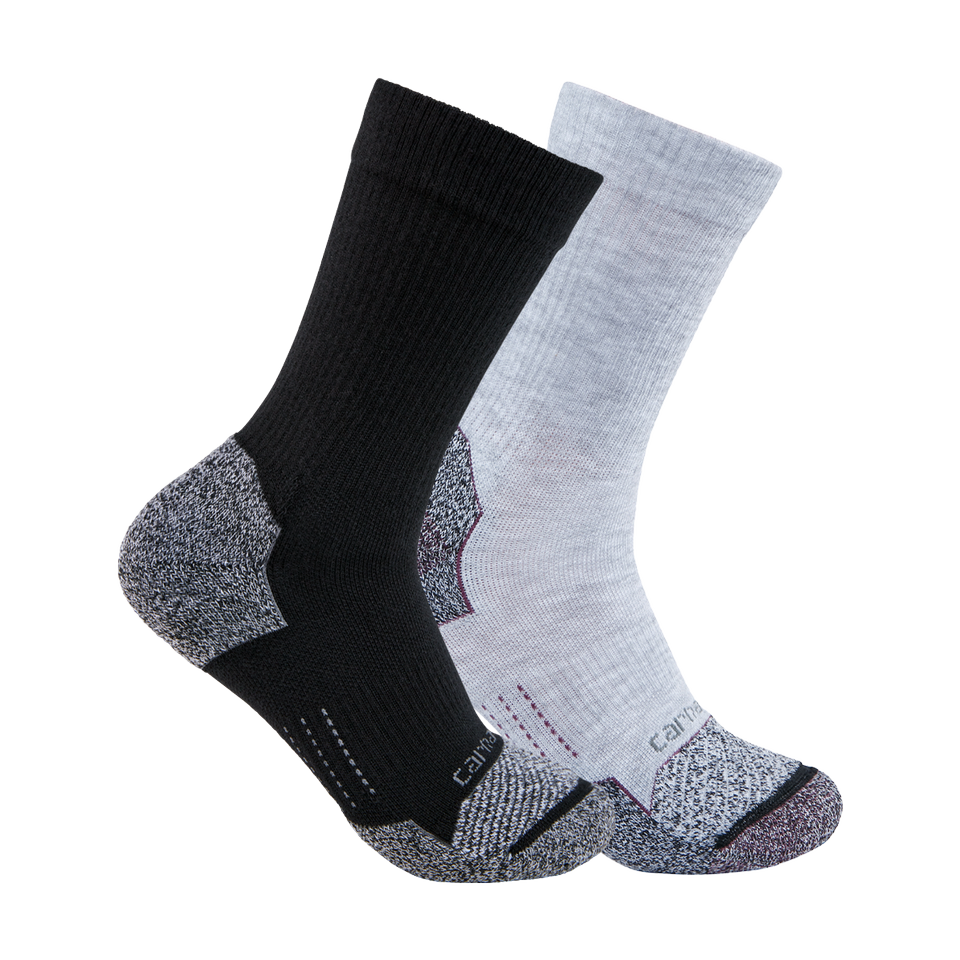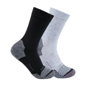 Everyday socks you can wear year round. These comfortable, women's crew socks are made of sweat-wicking yarn and have a reinforced heel and toe for durability. The reinforced arch and ankle adds support, and comes in a 2 pack.
