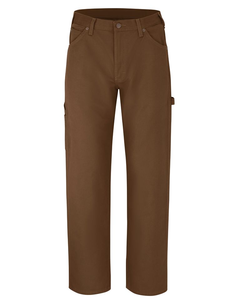 Dickies’ Relaxed Fit Straight Leg Carpenter Duck Jean is a five-star customer favorite. It teams classic carpenter jean styling with tightly woven cotton duck. It's both durable and garment washed for denim-like comfort. The relaxed fit gives extra room through the seat and thigh, with a slightly tapered leg that fits over boots. The hammer loop and dual tool pockets put tools within easy reach. Body: 12 oz. Duck Body: 100% Cotton Metal tack button Folder set, 1.5" Home Wash