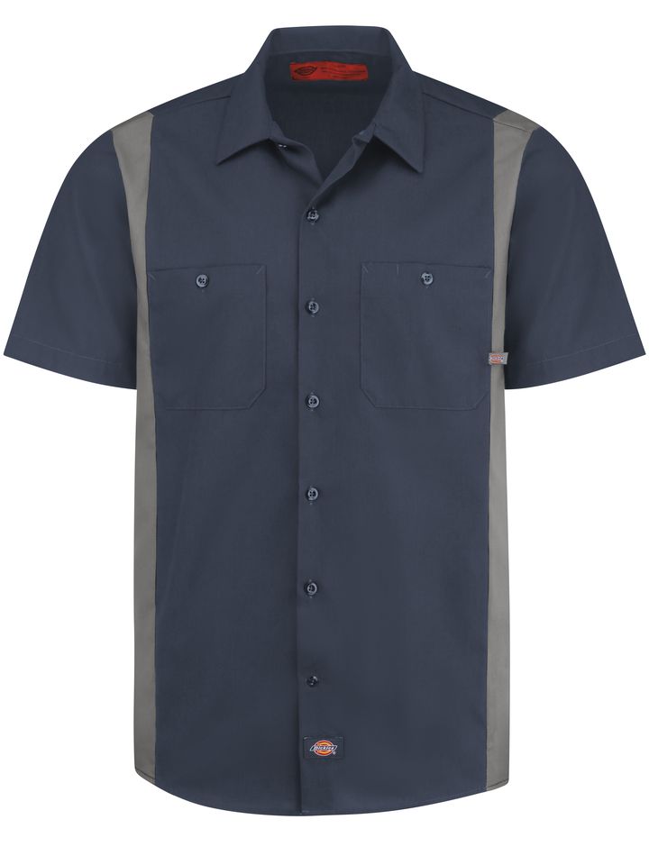 Dickies' Industrial Color Block Short Sleeve Shirt is equipped for a wide range of jobs. Constructed of easy-care, fade-resistant poplin, this shirt stays tough, yet elegant‚ with button closure at the neck and a two-piece lined collar with permanent stays. A square cut tail means this shirt looks good tucked in or worn out. Available in a variety of colors, this is the most stylish and most versatile work shirt on the market. Body: 4.25 oz. Poplin Body: 65% Polyester / 35% Cotton Two piece convertible collar with sewn in stays 2 Hex chest pockets with pencil stall Industrial Laundry - Heavy Soil
