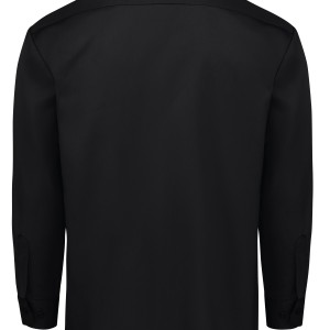 Dickies' Long Sleeve Traditional Work Shirt features a generous cut through the shoulders and chest to give you plenty of room for movement. It has a square tail design that looks good tucked in or untucked. It's crafted from our sturdy polyester/cotton twill work cloth, woven for durability and longevity. This shirt will also help you stay dry with its moisture-wicking properties. For added utility, two chest flap pockets with button closure provide storage on the job. Other details include pencil division on the left pocket, a standard spread collar and dyed-to-match melamine buttons. Body: 5.25 oz. Twill Body: 65% Polyester / 35% Cotton Non-break melamine buttons Two piece convertible collar 2 Hex chest pockets with button down flaps and pencil stall Home Wash