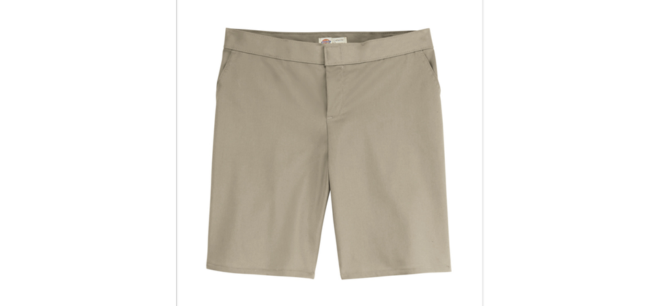 Dickies' Women's Flat Front Short sits slightly below the waist and has a stretch interlining in the waistband for expanded comfort. It features wrinkle resistant, StayDark® and stain-release technology. The short is manufactured with a right back-welt pocket with button closures and a hook-and-eye front closure. Body: 6.75 oz. Stay Dark® Twill Body: 65% Polyester / 35% Cotton Metal hook and eye 4 Welt back pocket.|Slash front pockets Folder set, 1.5", Stretch interlining for expanded comfort waist Industrial Laundry - Heavy Soil