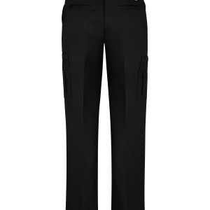 Dickies' Women's Premium Relaxed Straight Cargo Pants feature cargo pockets with hidden zipper closures and two back welt pockets. The contoured waistband has stretch interlining to prevent gapping. This cargo pant is wrinkle resistant and has easy-care stain release to aid in the easy maintenance and upkeep. The plus-size pants have darts for a better fit. Body: 6.75 oz. Stay Dark® Twill Body: 65% Polyester / 35% Cotton Metal tack button 6 Welt back pockets. Cargo pockets with zip closure. Two piece contoured waistband, 1.5" Industrial Laundry - Heavy Soil