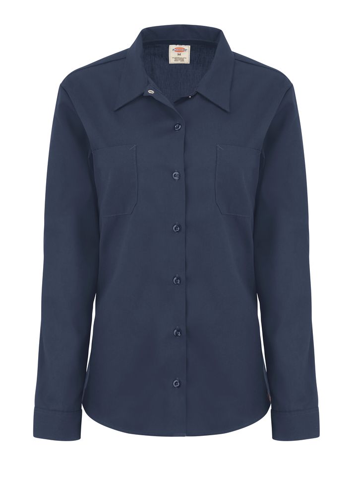Built with comfort and durability, Dickies' Women's Industrial Long Sleeve Work Shirt is one tough shirt. Not to mention, it is perfect for a wide variety of jobs. It is constructed of permanent press poplin with mitered front pockets. The Dickies logo can be found on the bottom and on the side of the left pocket. Body: 4.25 oz. Poplin Body: 65% Polyester / 35% Cotton Two piece convertible collar with sewn in stays 2 Hex chest pockets Industrial Laundry - Heavy Soil