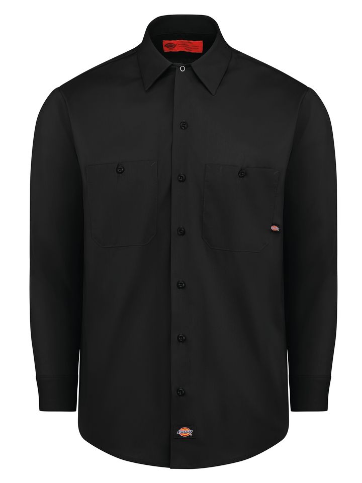 Dickies' Long Sleeve Industrial Work Shirt is a rugged choice that always looks neat and holds up to industrial laundering. It's comfortable, presents a sharp appearance, and is tough as nails. Easy care, permanent press polyester/cotton poplin resists wrinkling and fading. The perfect uniform shirt made to withstand the rigors of any job and industrial laundering. Available in a variety of colors in extended sizing. Body: 4.25 oz. Poplin Body: 65% Polyester / 35% Cotton Two piece convertible collar with sewn in stays 2 Hex chest pockets with pencil stall Industrial Laundry - Heavy Soil