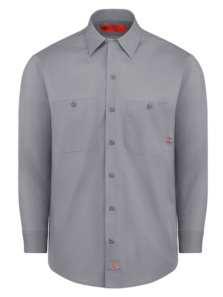 Dickies' Long Sleeve Industrial Work Shirt is a rugged choice that always looks neat and holds up to industrial laundering. It's comfortable, presents a sharp appearance, and is tough as nails. Easy care, permanent press polyester/cotton poplin resists wrinkling and fading. The perfect uniform shirt made to withstand the rigors of any job and industrial laundering. Available in a variety of colors in extended sizing. Body: 4.25 oz. Poplin Body: 65% Polyester / 35% Cotton Two piece convertible collar with sewn in stays 2 Hex chest pockets with pencil stall Industrial Laundry - Heavy Soil