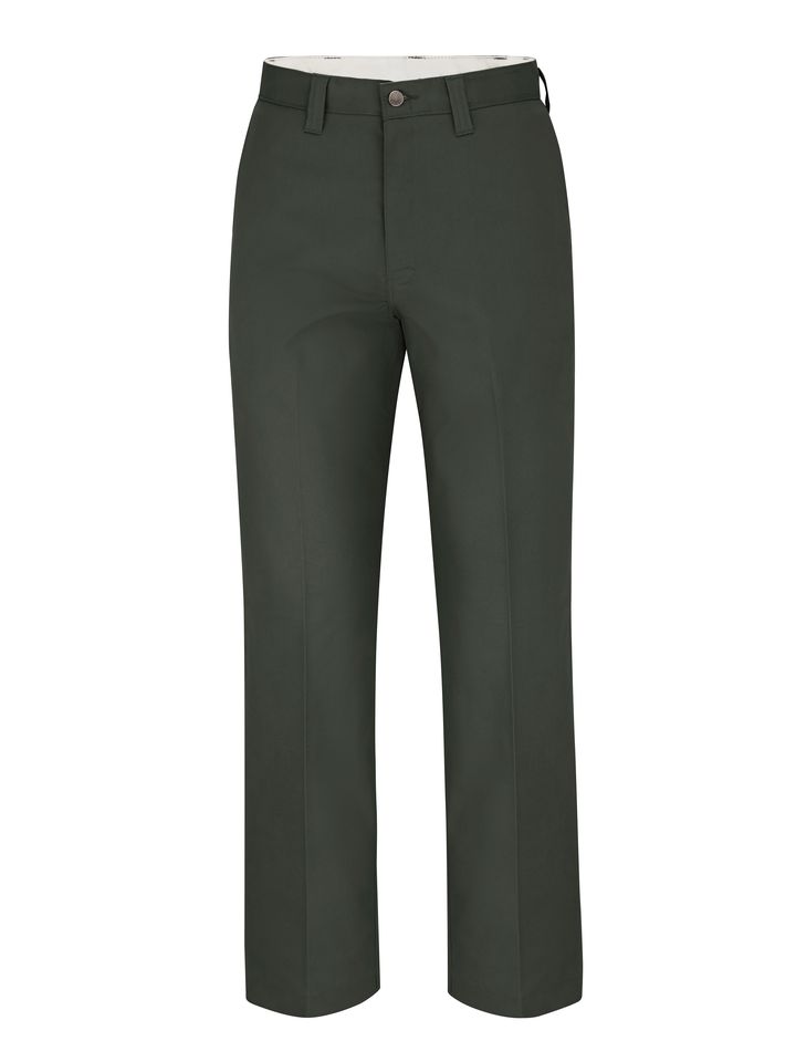 Dickies' Industrial Relaxed Fit Straight Leg Multi-Use Pocket Pants offer additional pocket storage with a more professional look. A multi-use welt pocket on the right leg snaps shut to secure cell phone, wallet and other essentials. It's also designed for durability‚ on the job and in industrial laundries. The metal tack closure, hefty belt loops, and premium fabric finish extend the pants life and reduces repairs. It's a fade-resistant, permanent-press, polyester/cotton twill with Stay-Dark® Technology. Body: 7.25 oz. Twill Body: 65% Polyester / 35% Cotton Metal tack button|Heavy duty brass ratcheting sipper won't break under stress 5 Reinforced front pocket bags. Welt back pockets. Mult-use side pocket. Inner-lined, 1.5" Industrial Laundry - Heavy Soil