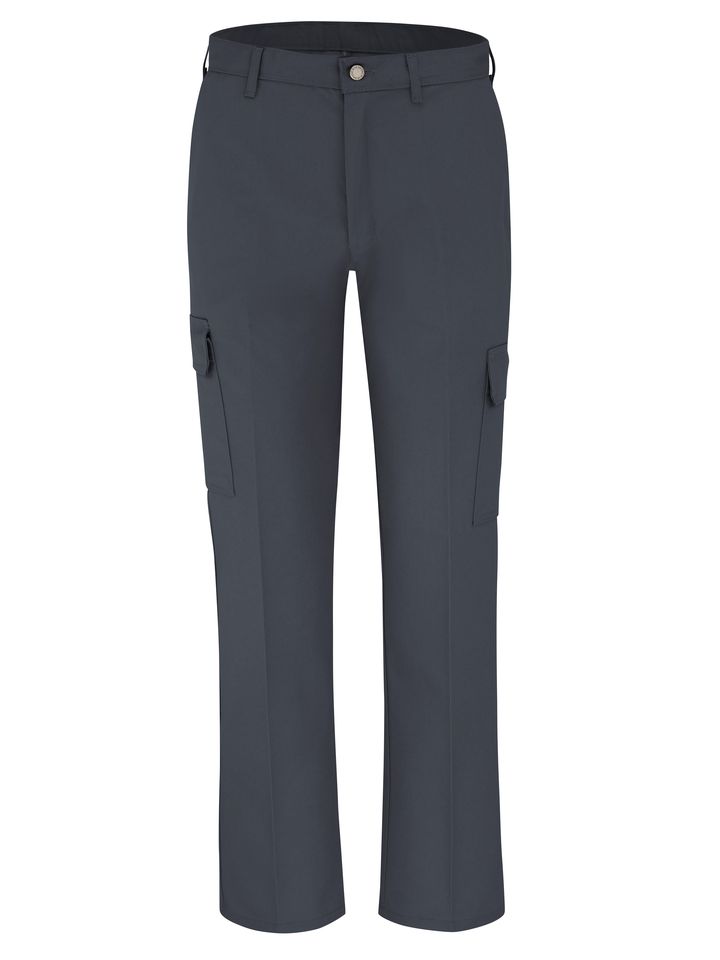 Dickies' Industrial Relaxed Fit Straight Leg Cargo Pants are a premium work pant offering uniform comfort, while standing up to industrial laundering. Roomy cargo pockets with hidden snaps hold plenty. The metal tack button waist closure is a durable design that won't wear out. Double thick front pockets, crotch gusset, metal tack button and wider belt loops add durability. Wrinkle-free polyester/cotton twill with StayDark® resists fading in even dark colors. Body: 7.75 oz. Stay Dark® Twill Body: 65% Polyester / 35% Cotton Metal tack button 6 Pleated cargo pockets with hidden snaps. Welt back pockets. Folder set, 1.5" Industrial Laundry - Heavy Soil