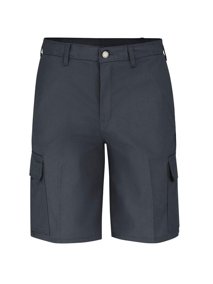 This relaxed fit StayDark Technology short is built to work hard and look good while doing it thanks to its wrinkle resistant and easy care stain release properties. It features a metal tack button waist closure, welt back pockets, and pleated cargo pockets with hidden snaps. Body: 7.75 oz. Stay Dark® Twill Body: 65% Polyester / 35% Cotton Metal tack button 6 Welt back pockets. Pleated cargo pockets with hidden snaps. Folder set, 1.5" Industrial Laundry - Heavy Soil
