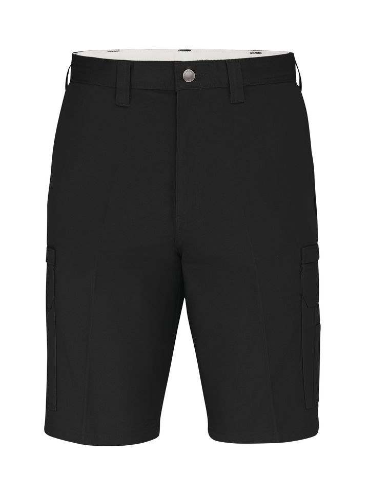 Get in on this work-ready cargo short with endless uses. Dickies' 11" Industrial Cargo Short is made of a soft and durable, 100% cotton fabric to keep you comfortable and ready for anything. The cargo pockets and extra pocket on the outside provide just enough storage space, while the fade resistant, winkle resistant and easy-care stain release keep you looking professional. Body: 8.5 oz. Stay Dark® Twill Body: 100% Cotton Metal tack button 6 Cargo pockets with zip closure. Welt back pockets Inner-lined, 1.5" Industrial Laundry - Heavy Soil