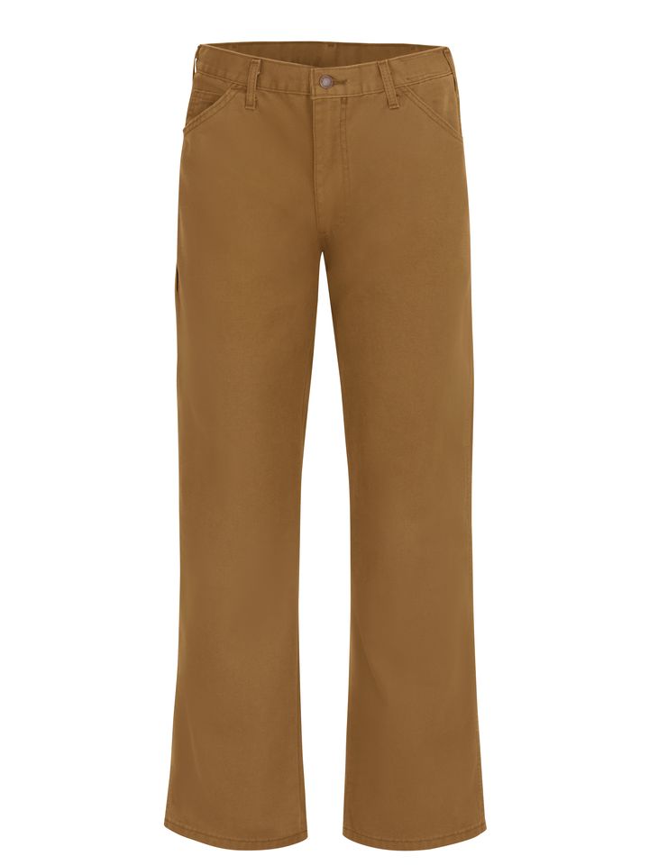 Dickies' workwear steals the spotlight with this Industrial Relaxed Fit Straight Leg Carpenter Duck Jean. Made for the toughest jobs, the duck fabric will stand up to any job. Either color you choose will stay vibrant with a fade resistant technology that stands up to industrial laundering. On top of that, this is garment washed for softness and shrinkage control. Body: 10 oz. Stay Dark® Duck Body: 75% Cotton / 25% Polyester Metal tack button 5 Front scoop pockets with watch pocket. Oversized back pockets. Folder set, 1.5" Industrial Laundry - Heavy Soil