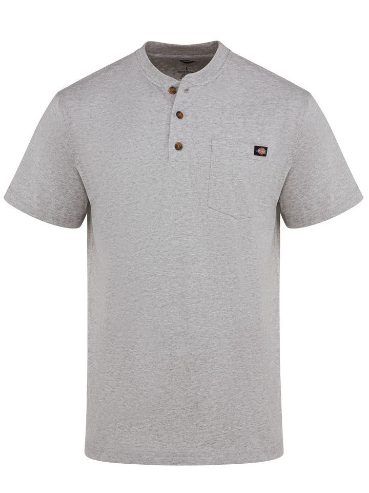 Made of 100% cotton jersey knit to provide a soft feel and comfortable wear, this Dickies’ Short Sleeve Traditional Heavyweight Henley is an essential workwear piece. It features taped neck and shoulder seams for added strength and durability. It has three horn buttons in the front, a left chest pocket and a tagless collar to prevent chafing. Body: 6.75 oz. Jersery Body: 100% Cotton Set in rib knit 1 Left chest spade pocket Home Wash