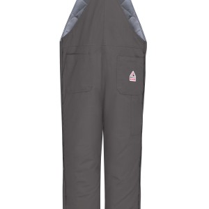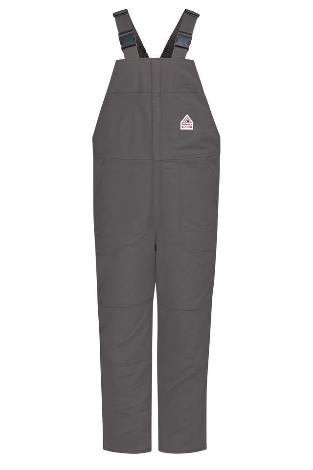 For cold jobs, this midweight insulated bib overall offers unbeatable warmth with CAT 2 AR/FR protection and deluxe features like rugged, double-reinforced knees. Hook and loop leg tabs ensure your coverall fits snugly around your boots. Shell: Flame resistant, 7 oz. (235 g/m²) Twill, Water repellent|Insulation Package: 14 oz. (474 g/m²) Shell: 88% Cotton/ 12% Nylon|Lining: 100% Cotton|Insulation Package: 100% Modacrylic Arc Rating ATPV 34 calories/cm² Elasticized shoulder straps with non-conductive adjustable hardwear Five large patch pockets & hip pocket with closure Industrial Laundry - Heavy Soil|Industrial Laundry - Light Soil|Home Wash
