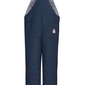 For cold jobs, this midweight insulated bib overall offers unbeatable warmth with CAT 3 AR/FR protection and deluxe features like rugged, double-reinforced knees. Large patch pockets and bonus utility pockets ensure there's a place for all of your tools. Shell: Flame resistant, 7 oz. (235 g/m²) Twill, Water-repellent|Insulation Package: 14 oz. (474 g/m²)Body: 7 oz. (235 g/m²) Flame Resistant Twill Shell: 88% Cotton/ 12% Nylon|Lining: 100% Cotton|Insulation Package: 100% ModacrylicBody: 88% Cotton / 12% Nylon Arc Rating ATPV 36 calories/cm² NFPA 2112|NFPA 70E Category 3 Protection Elasticized shoulder straps with non-conductive adjustable hardwear Five large patch pockets & hip pocket with closure Industrial Laundry - Heavy Soil|Industrial Laundry - Light Soil|Home Wash