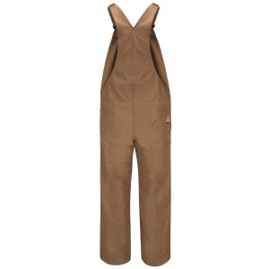If you're looking for the ultimate in rugged durability, warmth, and FR protection, then this heavyweight brown bib duck overall is made for you. With insulation throughout and side vent openings, these overalls with keep you warm and comfortable while they protect you. Plus, thigh-high leg zippers make then easy to put on and take off. Flame resistant, 13 oz. (440 g/m²) Cotton Duck with 5.5 oz. (170 g/m²) Modacrylic Blend Quilted InsulationBody: 13 oz. (440 g/m²) Excel FR® ComforTouch® Flame Resistant Duck|Insulation: 5.5 oz. (170 g/m²) Flame Resistant 100% Cotton DuckBody: 100% Cotton|Insulation: 44% Cotton / 6.5% Nylon / 46% Modacrylic / 3.5% Polyester Arc Rating ATPV 46 calories/cm² NFPA 2112|ASTM F1506 Category 4 Protection 8 Two large front bib pockets with pencil stall|Two set-in swing pockets|Watch pocket|Two large hip pockets|Double tool pocket Home Wash