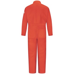 This midweight classic coverall provides CAT 2 FR/AR protection with convenient features to help you work smarter, like 5 well placed pockets to store your tools and side vents to keep you dry and comfortable all day long. EXCEL FR® Flame resistant, 9 oz. (305 g/m²) Twill 100% Cotton Arc Rating ATPV 11 calories/cm² Two-way concealed Nomex® taped brass break-away zipper, concealed snap at top of zipper at neck One-piece, topstitched, lay-flat collar Two set-in front pockets|One chest pocket|Two patch hip pockets Industrial Laundry - Heavy Soil|Industrial Laundry - Light Soil|Home Wash
