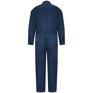 This lightweight uniform coverall provides CAT 2 FR/AR protection without added bulk. Innovative features provide extra comfort and durability. All pockets are designed with specfic details to ensure your personal effects stay safe. EXCEL FR® ComforTouch®Flame resistant, 6 oz. (205 g/m²) Sateen 88% Cotton/ 12% Nylon Arc Rating ATPV 8.7 calories/cm² Two-way, concealed Nomex® taped brass break-away zipper One-piece, topstitched, lay-flat collar Two inset lower front pockets are topstitched & lined|Two angled chest pockets with concealed flap zipper closures|Two patch hip pockets have single concealed snap closures|Left sleeve pocket & one-piece rule pocket on right leg Industrial Laundry - Heavy Soil|Industrial Laundry - Light Soil|Home Wash