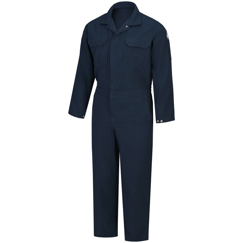 This midweight coverall provides CAT 2 FR/AR protection. Innovative features provide extra comfort and convenience. Its Nomex® taped brass zipper with concealed snap offers compliant protection and quick breakaway. Flame resistant 7 oz. (235 g/m²)Body: 7 oz. (235 g/m²) Flame Resistant 47% Modacrylic/ 37% Lyocell/ 16% AramidBody: 47% Modacrylic / 37% Lyocell / 16% Aramid Arc Rating ATPV 11 calories/cm² NFPA 2112 Category 2 Protection Two-way concealed, Nomex® tape, brass, break-away zipper, concealed snap at top of zipper at neck & concealed snap closure on sleeve cuff One-piece, topstitched, lay-flat collar Two, two-needle top-stitched patch chest pockets with flaps & concealed snap closure|Two front swing pockets are top-stitched & lined|Two patch hip pockets have single concealed snap closure|One sleeve pocket sewn to left bicep with pencil stall|Rule pocket on right leg Industrial Laundry - Light Soil|Home Wash