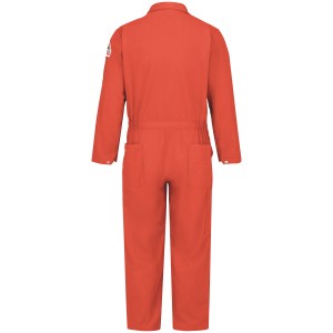This midweight premium coverall provides CAT 1 FR/AR protection with innovative features for extra comfort and convenience. 8 total pockets keep your tools and personal effects within reach while you work. Flame resistant, 6 oz. (205 g/m²) Nomex® IIIA 93% Nomex® Aramid/ 5% Kevlar® Aramid/ 2% Other Fiber Arc Rating ATPV 5.6 calories/cm² Two-way concealed Nomex® taped brass break-away zipper, concealed snap at top of zipper & at neck Mandarin-style, stand-up, two-way safety collar Two front swing pockets & two patch hip pockets|Two patch chest pockets with flaps & concealed snap closure, left sleeve pocket & a rule pocket on right leg Industrial Laundry - Light Soil|Home Wash