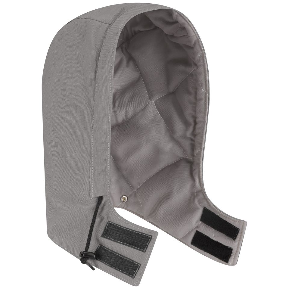 This midweight, detachable CAT 3 AR/FR hood is designed to provide extra cold weather protection, and can be snapped-on to many different Bulwark FR outerwear garments. Shell: Westex Ultrasoft®, Flame resistant, 7 oz. (375 g/m²), Water-Repellent|Insulation Package: 14 oz. (475 g/m²) Shell: 88% Cotton/ 12% Nylon|Lining: 100% Cotton|Insulation Package: 100% Modacrylic Hook-and-loop closure at front neck|Drawstring around face opening Industrial Laundry - Heavy Soil|Industrial Laundry - Light Soil|Home Wash