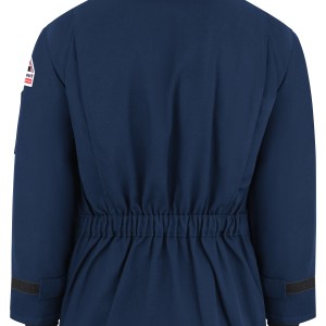 This heavyweight parka is insulated to provide warmth and CAT 4 FR/AR protection. The addition of water-repellent fabric keeps you dry in wet weather, and an internal snow belt keeps the elements out. Shell: Flame resistant, 6 oz. (205 g/m²) Nomex®IIIA, Water-Repellent|Insulation Package: 14.2 oz. (480 g/m²) with Wind BarrierShell: 6 oz. (205 g/m²) Nomex® IIIA Flame Resistant|Insulation: 14.2 oz. (480 g/m²) Flame Resistant Shell: 93% Nomex® Aramid/ 5% Kevlar® Aramid/ 2% Other Fiber|Lining: 100% Meta-Aramid|Insulation Package: 100% AramidShell: 93% Nomex® Aramid / 5% Kevlar® Aramid / 2% Other Fibers|Insulation: 100% Aramid Arc Rating EBT 59 calories/cm² NFPA 2112 Category 4 Protection Two-way, separating, extra heavy-duty Nomex®, taped brass zipper, fully covered with insulated storm flap, hook-and-loop secured Fully insulated stand-up collar Three large external patch pockets with hook-and-loop secured flaps (lower pockets with hand warmers), one inside chest pocket & sleeve pocket Industrial Laundry - Light Soil|Home Wash