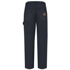 This midweight CAT 2 AR/FR dungaree offers the classic look of American workwear with NFPA® 2112 compliant FR protection. Convenient features like a hammer loop on left leg ensure you've got a dedicated place for all your tools, while triple-needle felled outseams add to the durability. Flame resistant, 11 oz. (390 g/m²), Water repellent 88% Cotton/ 12% Nylon Arc Rating ATPV 15 calories/cm² Waistband with button closure Five jean-style pockets|Rule pocket & utility pocket on right leg|Hammer loop & utility pocket on left leg Industrial Laundry - Heavy Soil|Industrial Laundry - Light Soil|Home Wash