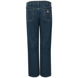 Stretch Denim! The #1 brand in FR brings you modern jeans in stretch denim. These are made from 12 oz. flame-resistant 94% cotton, 5% polyester, 1% spandex denim that provides comfort and mobility while you work. Flame-resistant, 12 oz. (405g/m²) 94% Cotton/ 5% Polyester/ 1% Spandex Arc Rating ATPV 15 calories/cm² One-piece waistband with metal button closure (metal is not exposed to skin) Two patch spade shaped hip pockets and scoop front pockets Industrial Laundry - Light Soil|Home Wash