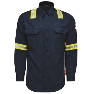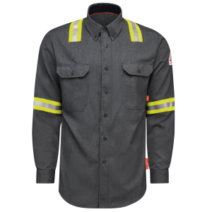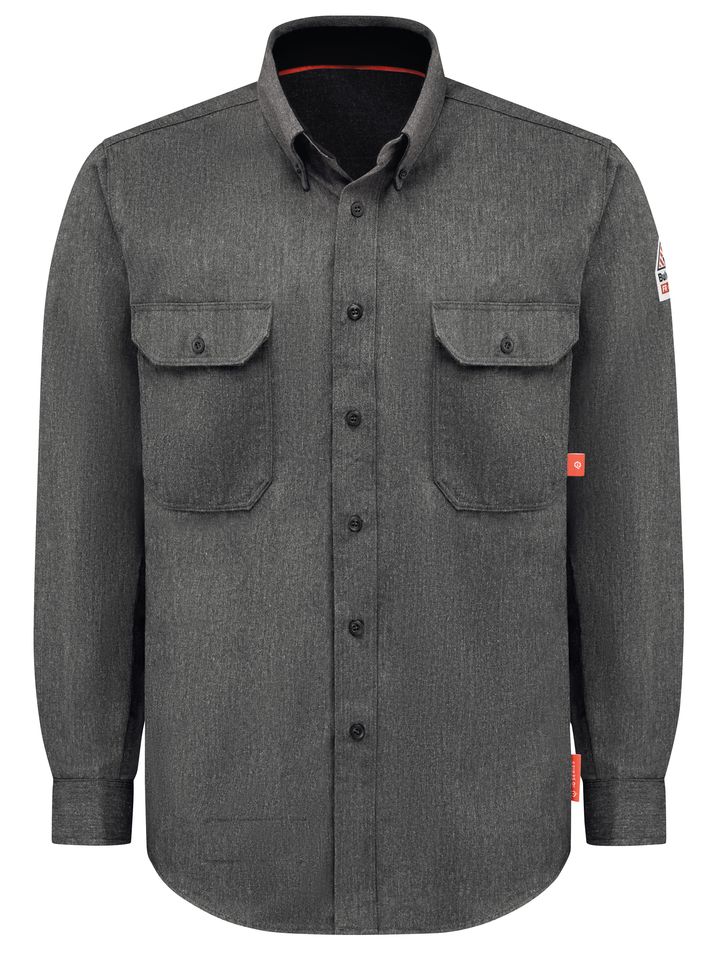 This lightweight CAT 2 FR/AR, NFPA® 2112 compliant shirt will keep you comfortable and protected, even on the hottest days in the field. With durability features to stand up to the hard work you do. Exclusively with TenCate Evolv™, Flame resistant, 5.5 oz. (185g/m²)Body: 5.5 oz. (185 g/m²) TenCate Evolv™ Flame Resistant Twill 50% Aramid/ 25% Lyocell/ 25% ModacrylicBody: 50% Aramid / 25% Lyocell / 25% Modacrylic Arc Rating ATPV 8.5 calories/cm² ASTM F1506|NFPA 2112|NFPA 70E Category 2 Protection Hemmed front placket with button closure & topstitched cuffs with two-button adjustable closures Banded, topstitched, button-down collar with red trim at neck seam Topstitched cuffs with two-button adjustable closures Two large chest pockets Industrial Laundry - Light Soil|Home Wash
