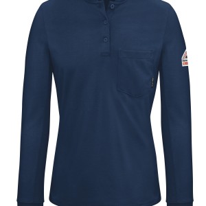 This women's lightweight CAT 2 AR/FR, NFPA® 2112 compliant henley provides a comfortable casual look, but also protects against the elements. EXCEL FR® Flame resistant, 7.0 oz. (235 g/m²) JerseyBody: 7.0 oz. (235 g/m²) Excel FR® Flame Resistant 100% CottonBody: 100% Cotton Arc Rating ATPV 8.9 calories/cm² ASTM F1506|NFPA 2112|NFPA 70E Category 2 Protection Three-button placket Knit henley collar Rib knit cuff Single spade chest pocket Home Wash