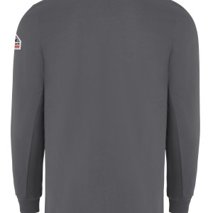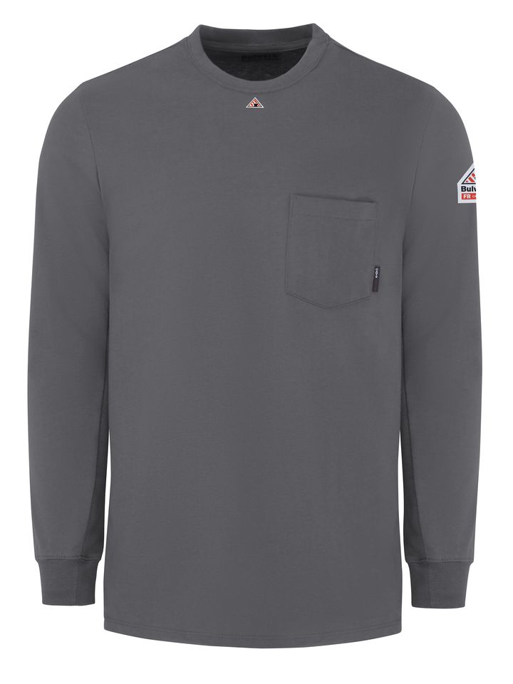 Meet the most comfortable FR long sleeve T-shirt you'll ever wear. This CAT 2 AR/FR, NFPA® 2112 compliant tee features a heat seal Bulwark® triangle centered at neck to show wearer has on FR undergarment. EXCEL FR® Flame resistant, 7 oz. (235 g/m²) InterlockBody: 7.0 oz. (235 g/m²) Flame Resistant 100% CottonBody: 100% Cotton Arc Rating ATPV 8.9 calories/cm² ASTM F1506|NFPA 2112|NFPA 70E Category 2 Protection Rib-knit crewneck collar Rib knit cuffs Single spade chest pocket Home Wash