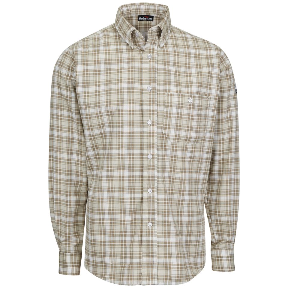 Looking to shake up your FR collection? This midweight dress shirt offers all the features you need in a professional work shirt, plus CAT 2 FR/AR protection and a stylish plaid pattern. Body: 6.5 oz. (220 g/m²) Excel FR® ComforTouch® Flame Resistant Sateen Body: 88% Cotton / 12% Nylon Arc Rating ATPV 9.5 calories/cm² NFPA 2112|NFPA 70E Category 2 Protection|NFPA 2112 - 2018 Compliant 1 Home Wash