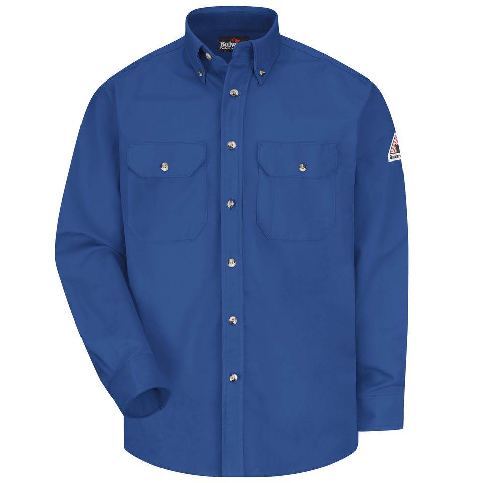 This midweight FR uniform shirt gives a tailored look and offers features for improved comfort and performance with CAT 2 AR/FR protection. Flame resistant, 7 oz. (235 g/m²)Body: 7 oz. (235 g/m²) 88% Cotton/ 12% NylonBody: 88% Cotton / 12% Nylon Arc Rating ATPV 8.6 calories/cm² ASTM F1506|NFPA 2112|NFPA 70E Category 2 Protection Button-down front & topstitched cuff with button closure Banded, button-down collar Two chest pockets Industrial Laundry - Heavy Soil|Industrial Laundry - Light Soil|Home Wash