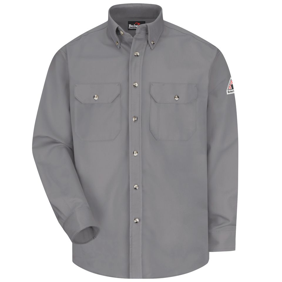 This midweight FR uniform shirt gives a tailored look and offers features for improved comfort and performance with CAT 2 AR/FR protection. Flame resistant, 7 oz. (235 g/m²)Body: 7 oz. (235 g/m²) 88% Cotton/ 12% NylonBody: 88% Cotton / 12% Nylon Arc Rating ATPV 8.6 calories/cm² ASTM F1506|NFPA 2112|NFPA 70E Category 2 Protection Button-down front & topstitched cuff with button closure Banded, button-down collar Two chest pockets Industrial Laundry - Heavy Soil|Industrial Laundry - Light Soil|Home Wash