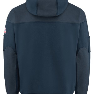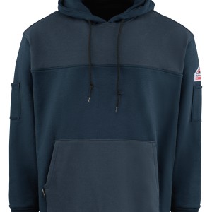 Now here’s a hoodie that helps you storm through the workday shielded from the elements – with everything in working order. Featuring HoodShield™ integrated face covering to shield your face from the wind and cold. A durable water repellent finish to keep you dry. Reinforced forearms that add durability where you need it most. And an oversized hand warmer pocket that includes an extra hidden internal pocket for secure storage. All in all, the type of relentless protection you can only get from Bulwark. Body: 12.3 oz. (415 g/m²) Flame Resistant Fleece Body: 48% Modacrylic / 38% Lyocell / 10% Para-aramid / 4% Spandex Elastane Arc Rating ATPV 27 calories/cm² NFPA 2112|NFPA 70E Category 3 Protection self-fabric cuffs 2 Large hand warmer pocket with hidden zippered pocket for secure storage Home Wash