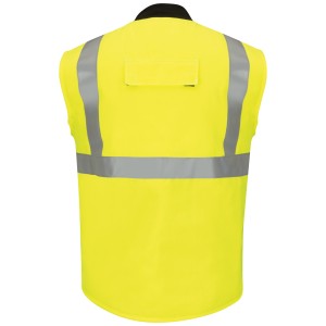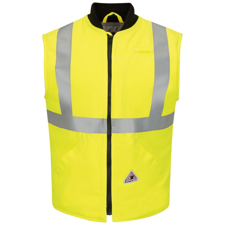 Serious FR protection combines with high visibility and insulation to keep you extra warm in this CAT 4 AR/FR dual-hazard safety vest, with all the bells and whistles, so you can do your best work. ANSI 107-2010 Class 2 Level 2 compliant & ANSI 107-2015 Type R Class 2 compliantcy and water repellent, so you can stay seen, safe and dry while you work. Shell: Flame resistant, 7 oz. (235 g/m²) Water-repellent|Lining: 100% Cotton|Insulation Package: 12 oz.(405 g/m²) Shell: 48% Modacrylic/ 37% Lyocell/ 15% Aramid|Lining: 100% Cotton|Insulation Package: 100% Modacrylic Arc Rating ATPV 45 calories/cm² Zipper front Two large inset slash welted pockets|One inside chest pocket|One Napoleon chest pocket with zipper closure Home Wash